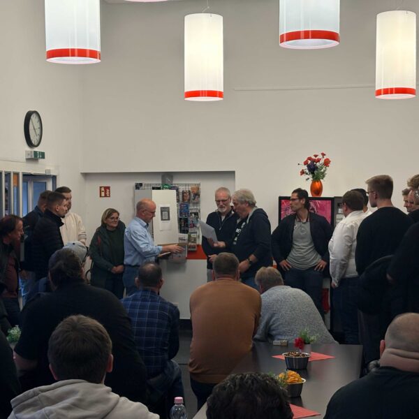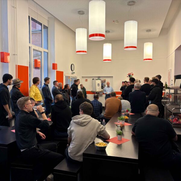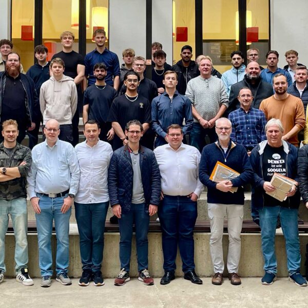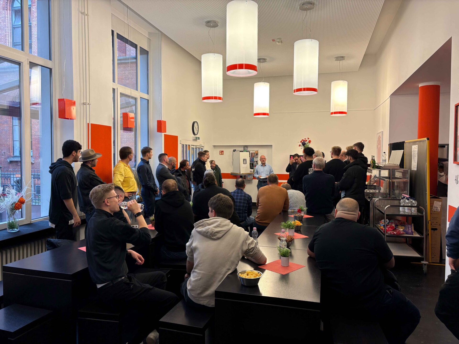 Etwa 50 Ehemalige waren aus diesem Anlass in die Prinzenstraße gekommen, die ältesten aus dem Abschlussjahr 1992. 1989 begannen beide ihre Lehrtätigkeit an der Dr. Buhmann Schule. Die ersten Programmiersprachen waren damals noch Assembler und RPG, inzwischen wird C# und PHP unterrichtet und zunehmend auch Künstliche Intelligenz im Informatikunterricht eingesetzt. Diese Entwicklung wurde von beiden Lehrkräften aktiv vorangetrieben und zügig in den Unterricht integriert, alles mit dem Ziel, die Ausbildungen zukunftsorientiert und praxisorientiert zu gestalten und den Teilnehmenden gute Berufschancen zu eröffnen. Der anhaltende Erfolg der Informatikausbildungen spricht für sich.