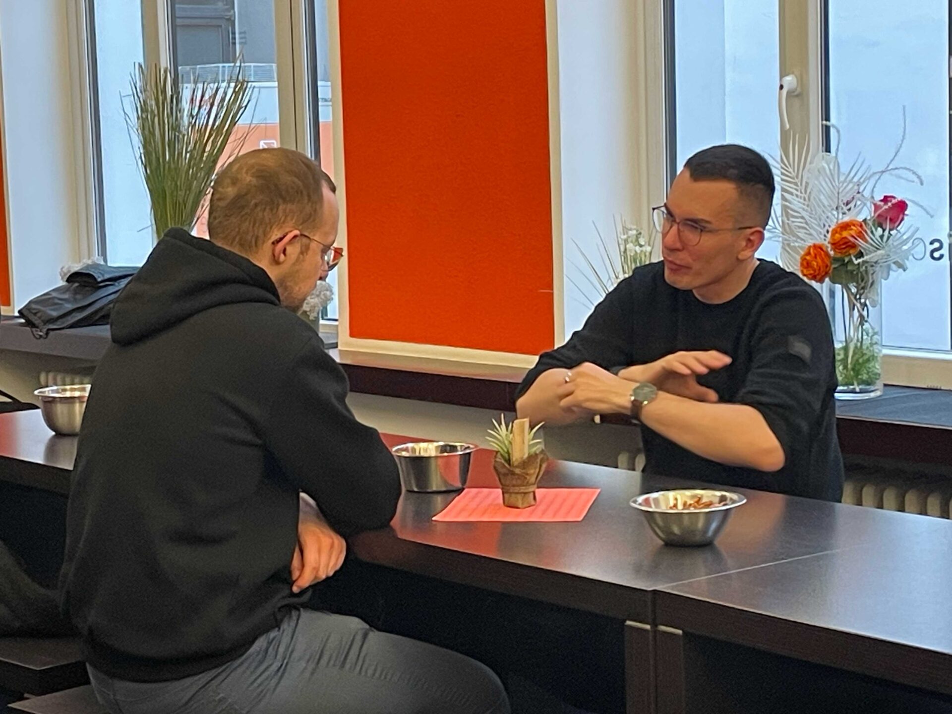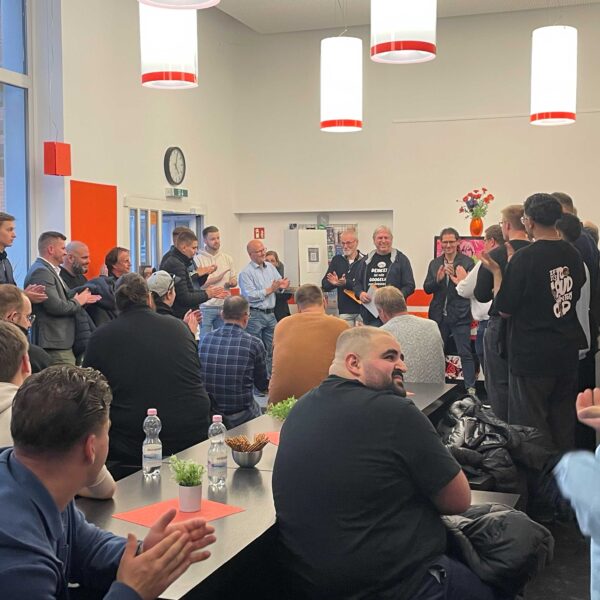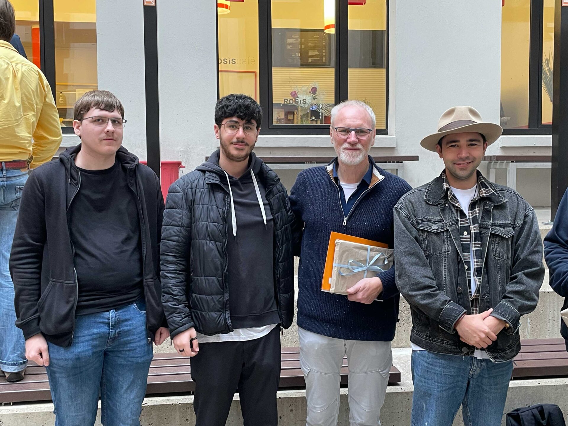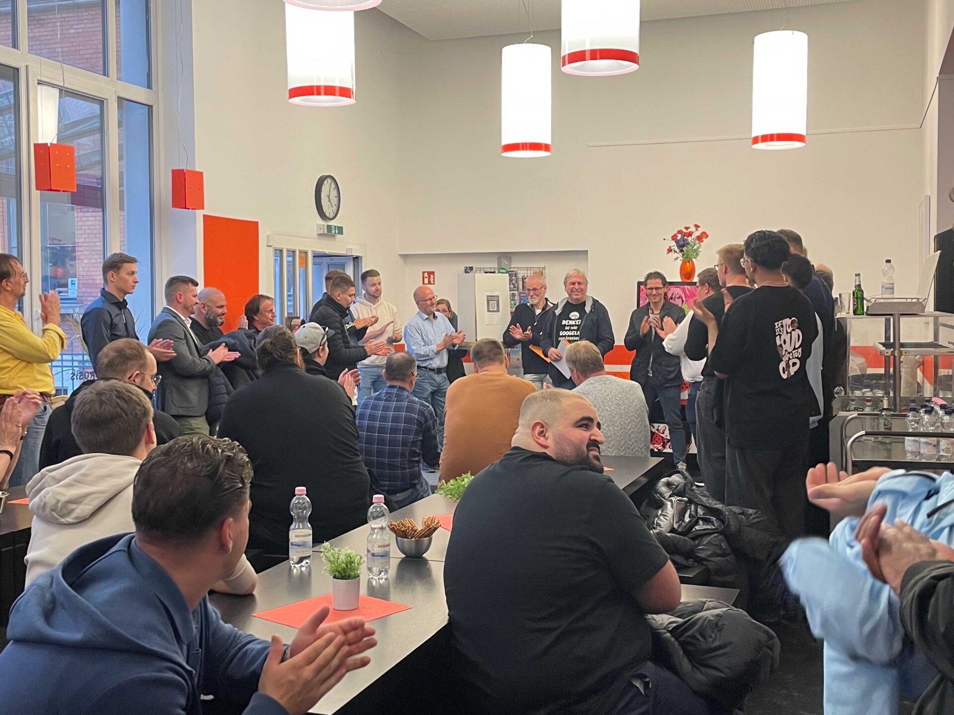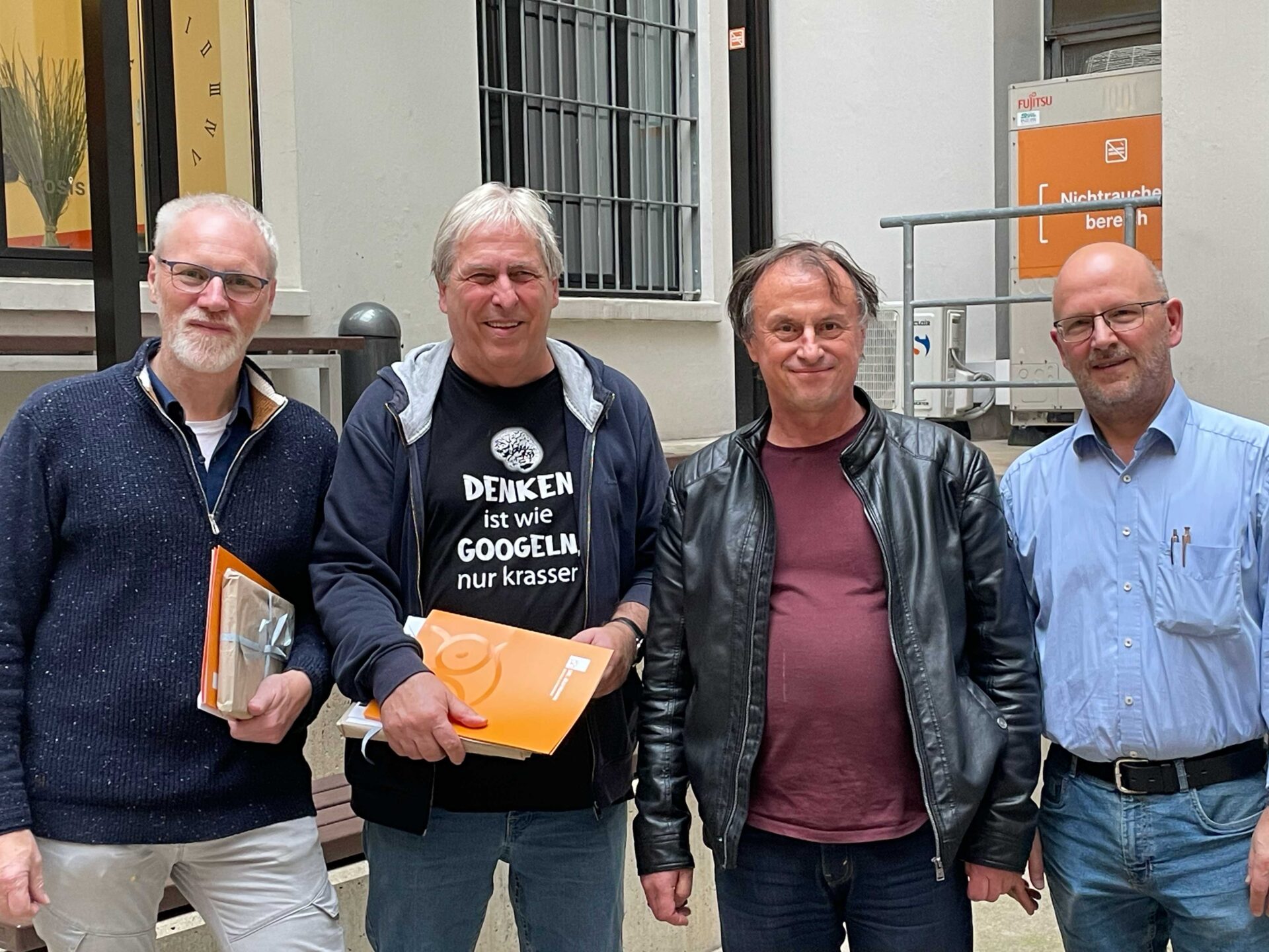Nach einer Würdigung ihrer Leistungen beim Aufbau und der Entwicklung der Ausbildungen über diese lange Zeit erhielten die beiden ihre „Abschlusszeugnisse“ mit der Versetzung in den Ruhestand. Besondere Anerkennungen wurden dabei ausgesprochen für Herrn Bodenstein für seine kreativen und nerdigen T-Shirts und für Herrn Rolke-Römermann für die Anwendung der Programmiersprache „Grüner Tee“. Außerdem erhielten sie noch Stundenpläne, um ihnen die Umstellung auf das beschauliche Rentner-Dasein zu erleichtern. Wichtiger Tagesordnungspunkt: Hilfemails von ehemaligen Kolleg:innen ignorieren!