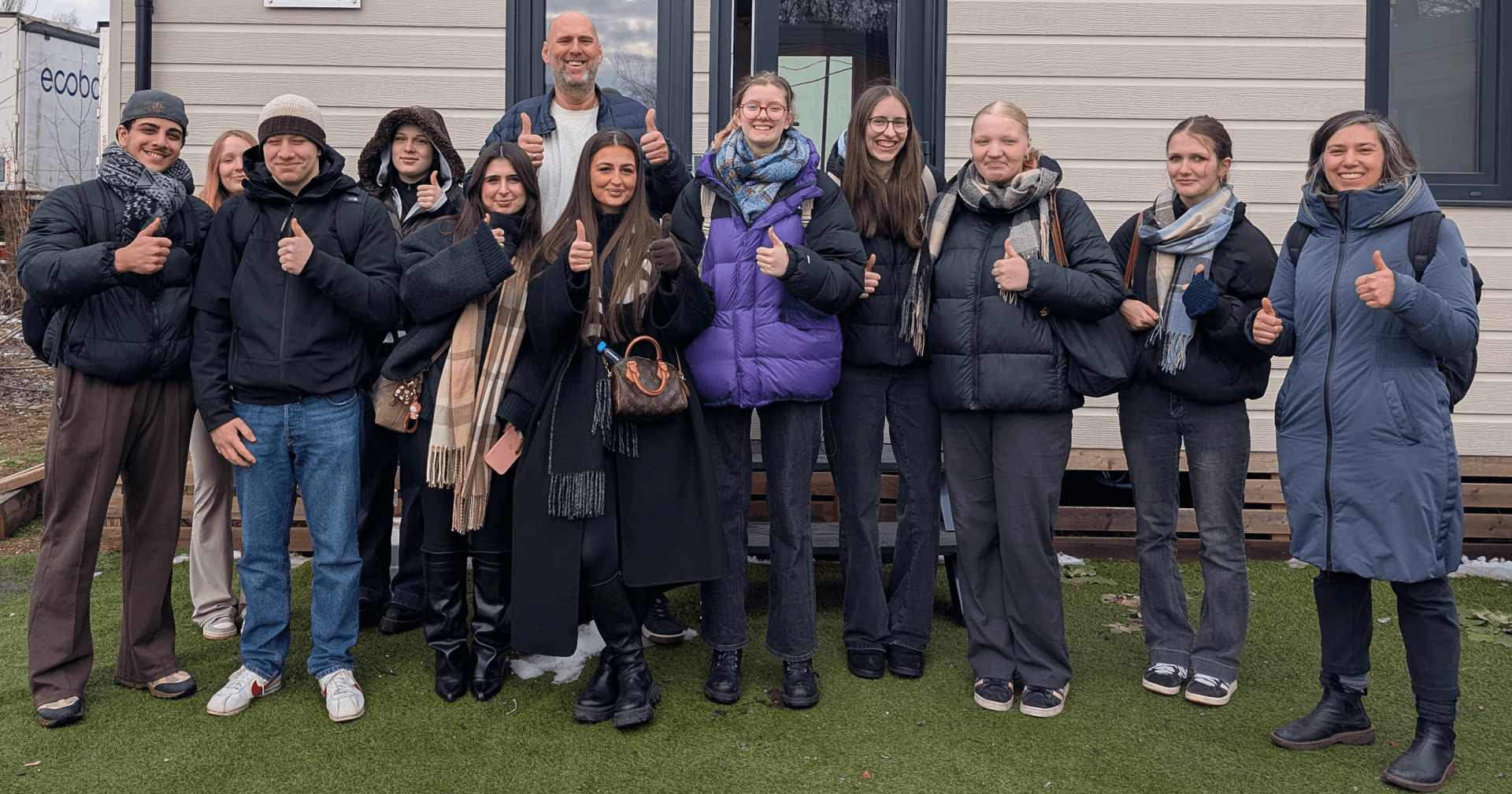 Der Besuch war für unser Projektteam besonders wertvoll, da die Schülerinnen und Schüler derzeit selbst Tiny Houses planen – innen wie außen. Die Vorgabe: maximal 25 Quadratmeter groß und so konzipiert, dass sie ohne zusätzliche Genehmigung im Straßenverkehr transportiert werden können. Durch die Besichtigung vor Ort konnten sie ein realistisches Gefühl für Größenverhältnisse entwickeln und gleichzeitig praktische Ideen für intelligente Einrichtungslösungen sammeln.